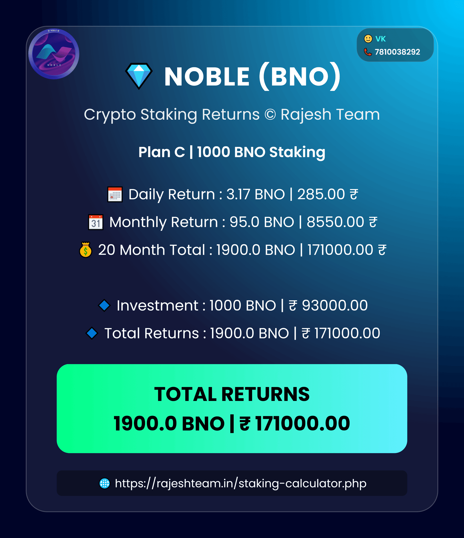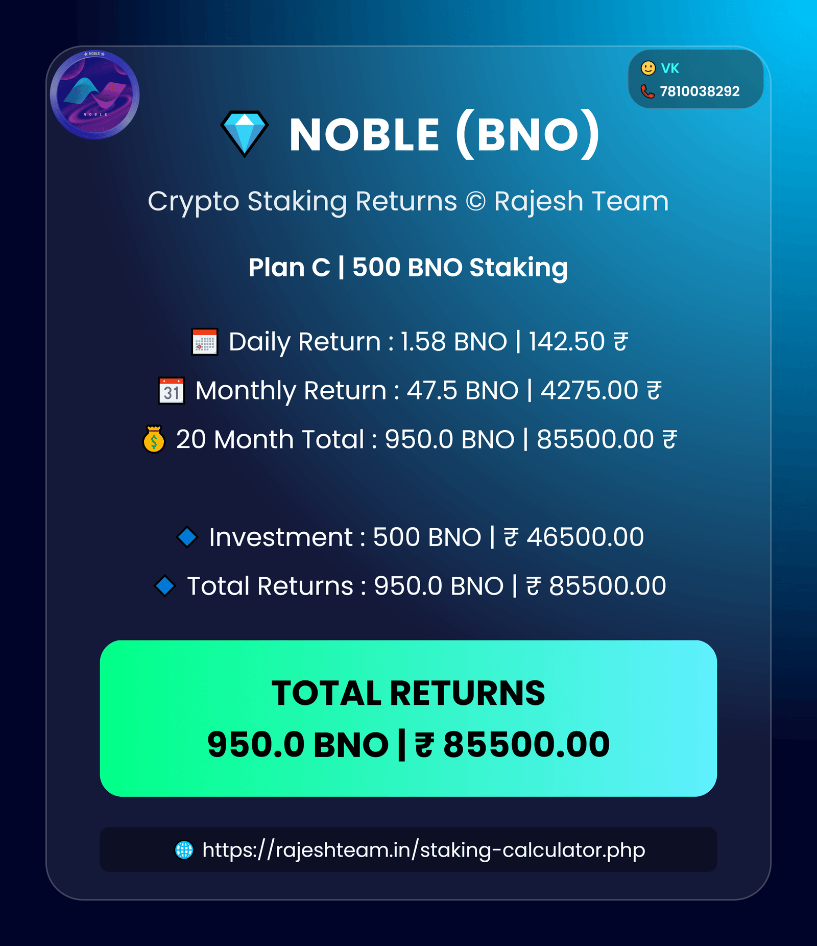 Galaxy Smart Chain • BNO Staking Plans